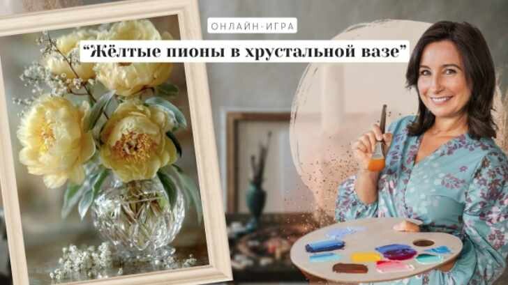 Жёлтые пионы в хрустальной вазе [Ольга Базанова]